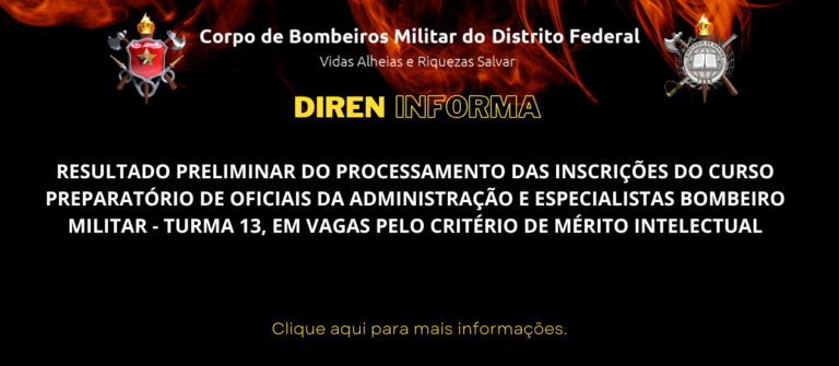 RESULTADO PRELIMINAR DO PROCESSO SELETIVO DO CURSO PREPARATÓRIO DE OFICIAIS DA ADMINISTRAÇÃO E ESPECIALISTAS BOMBEIRO MILITAR – TURMA 13, EM VAGAS PELO CRITÉRIO DE ANTIGUIDADE
