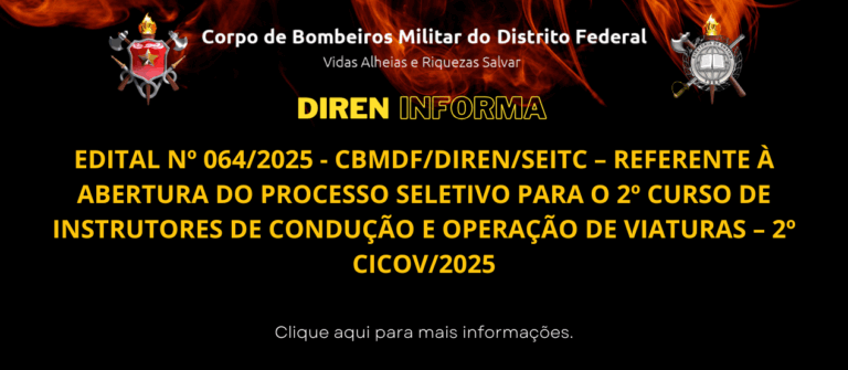 EDITAL Nº 064/2025 – CBMDF/DIREN/SEITC – REFERENTE À ABERTURA DO PROCESSO SELETIVO PARA O 2º CURSO DE INSTRUTORES DE CONDUÇÃO E OPERAÇÃO DE VIATURAS – 2º CICOV/2025