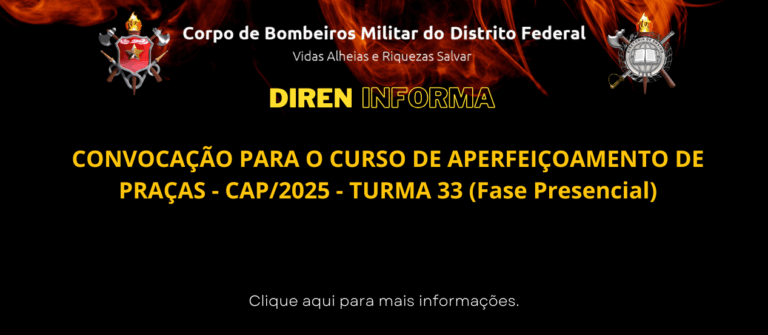 O DIRETOR DE ENSINO, resolve: TORNAR PÚBLICO, a abertura do processo seletivo interno para o Curso de Instrutores de Condução e Operação de Viaturas – 2º CICOV/2025, que será realizado no Centro de Treinamento Operacional – CETOP e no 2º Grupamento de Bombeiros Militar do…